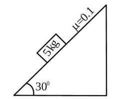 A block of mass 5" " kg is placed on a rough inclined surface as shown in the figure. If $\vec{F}_1$ is the...