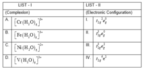 Match List I with List II Choose the correct answer from the options given below...