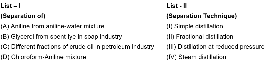 Match List - I with List - II. Choose the correct answer from the options...