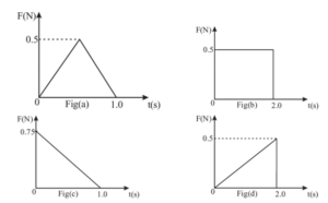 Figures (a), (b), (c) and (d) show variation of force with time. The impulse is...