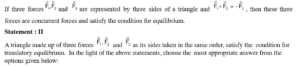 Statement :1 If three forces $\vec{F}_1, \vec{F}_2$ and $\vec{F}_3$ are represented by three sides of a triangle and $\vec{F}_1+\vec{F}_2=-\vec{F}_3$, then these three forces are...