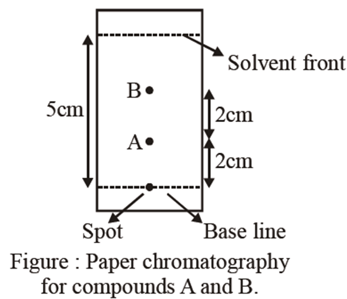 Using the provided information in the following paper chromatogram : the calculate $\mathrm{R}_{\mathrm{f}}$ value...