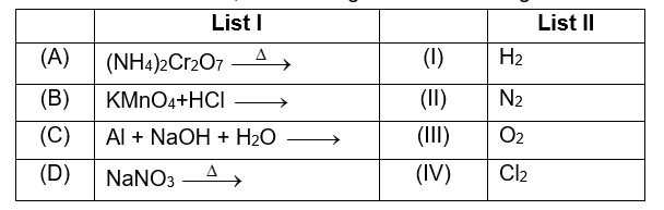 Match List–I with List–II, match the gas evolved during each reaction. Choose the correct answer...