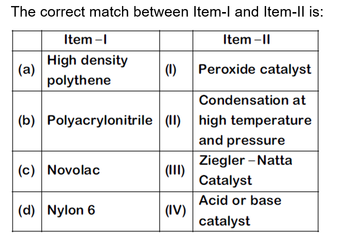 Consider the Assertion and Reason given below. Assertion (A) : Ethene polymerized in the presence of Ziegler Natta Catalyst at high temperature and pressure is...