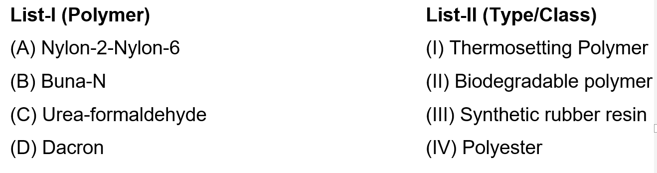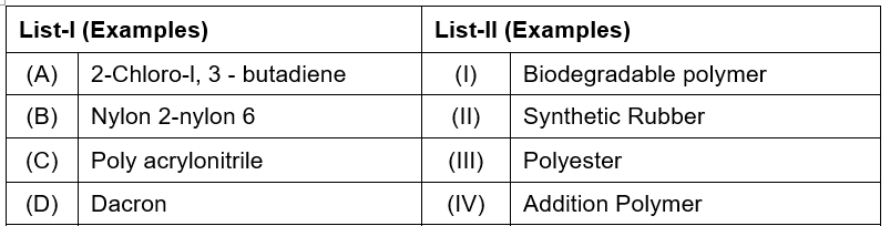 Match List I with List II Choose the correct answer from the options...