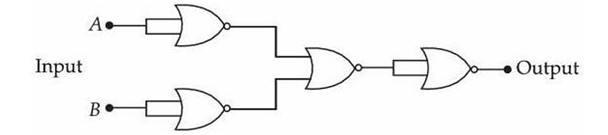In the following digital circuit, what will be the output at ‘Z’, when the input (A, B) are (1, 0), (0, 0), (1, 1,), (0,...