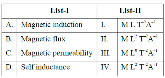 Match the LIST-I with LIST-II