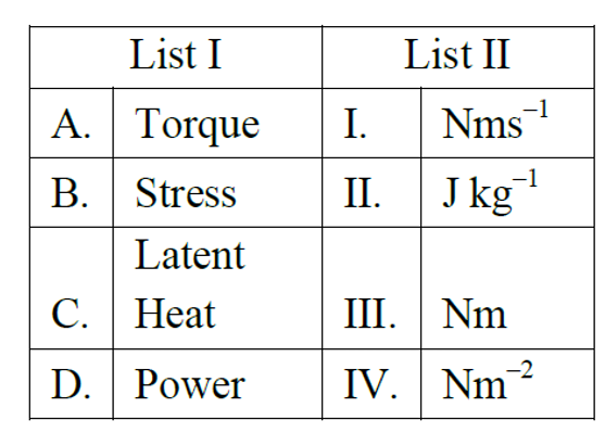 Match List I with List II. Choose the correct answer from the options given below...