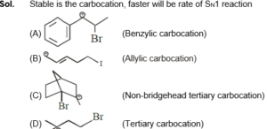 Choose the halogen which is most reactive towards SN1 reaction in the given compounds (A, B, C & D)