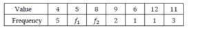 Suppose that the sum of the frequencies is 19 and the median of this frequency distribution is 6.
