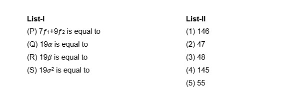 For the given frequency distribution, let 𝛼 denote the mean deviation about the mean, 𝛽 denote the mean deviation about the median, and 𝜎2 denote the variance.
