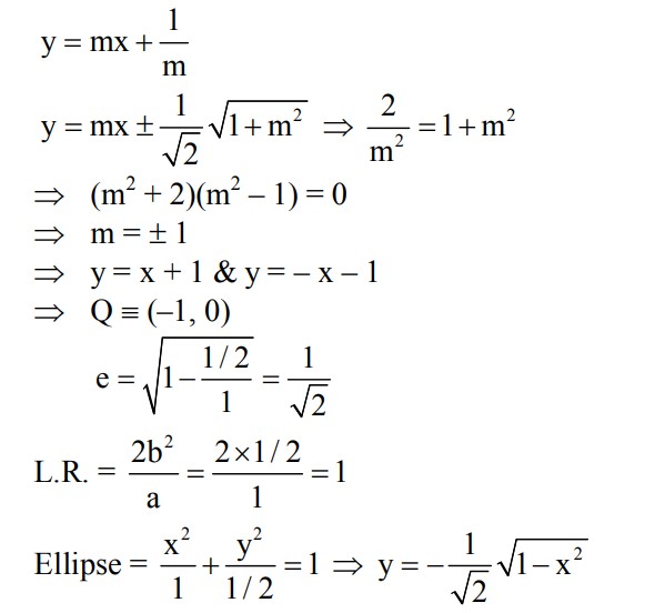 For the ellipse, the eccentricity is $\frac{1}{\sqrt{2}}$ and the length of the latus rectum is 1