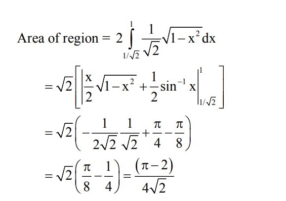The area of the region bounded by the ellipse between the lines $x=\frac{1}{\sqrt{2}}$ and $x=1$ is $\frac{1}{4 \sqrt{2}}(\pi-2)$