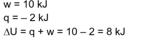 During compression of a spring the work done is 10 kJ and 2 kJ escaped to the surroundings as heat. The change in internal energy, $\Delta \mathrm{U}$ (in kJ ) is