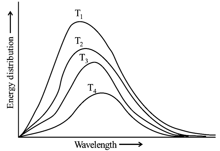 Following figure shows spectrum of an ideal black body at four different temperatures. The number of correct statement/s from the following is _______.