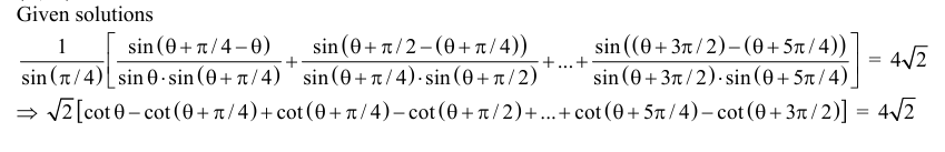 For $0<\theta<\frac{\pi}{2}$, the solution(s) of $\sum_{\mathrm{m}=1}^6 \operatorname{cosec}\left(\theta+\frac{(\mathrm{m}-1) \pi}{4}\right) \operatorname{cosec}\left(\theta+\frac{\mathrm{m} \pi}{4}\right)=4 \sqrt{2}$ is(are)