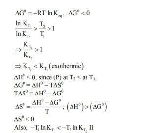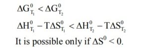 $\Delta \mathrm{G}^{\ominus}<0, \Delta \mathrm{~S}^{\ominus}<0$