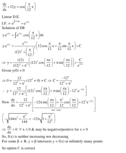 \frac{\mathrm{dy}}{\mathrm{dx}}+12 \mathrm{y}=\cos \left(\frac{\pi}{12} \mathrm{x}\right), y(0)=0 .