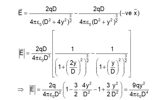 For point charges $-q,+q,+q$ and $-q$ are placed on $y$-axis at $y=-2 d, y=-d, y=+d$ and $y=+2 d$, respectively. The magnitude of the electric field $E$ at a point on the $x$-axis at $x=D$, with $D \gg d$, will behave as: