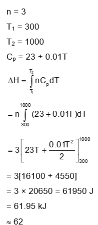 For silver, $\mathrm{C}_{\mathrm{D}}\left(\mathrm{JK}^{-1} \mathrm{~mol}^{-1}\right)=23+0.01 \mathrm{~T}$. If the temperature (T) of 3 moles of silver is raised from 300 K to 1000 K at 1 atm pressure, the value of $\Delta \mathrm{H}$ will be close to