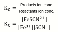 $\mathrm{Fe}_{(\mathrm{aq})}^{3+}+\mathrm{SCN}_{(\mathrm{aq})}^{-} \rightleftharpoons\left(\mathrm{FeSCN}_{(\mathrm{aq})}^{2+}\right.$