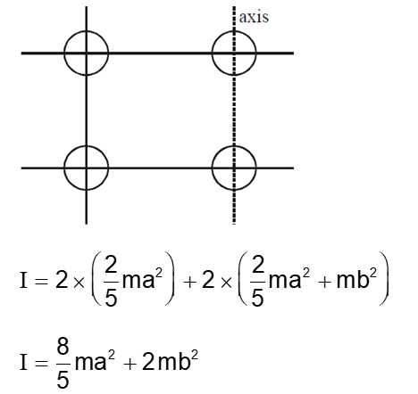 Four identical solid spheres each of mass 'm' and radius 'a' are placed with their centres on the four corners of a square of side 'b'. The moment of inertia of the system about one side of square where the axis of rotation is parallel to the plane of the square is :