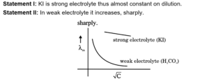 Statement I: For KI, molar conductivity increases steeply with dilution.