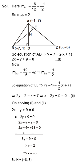 If a $\Delta$ABC has vertices A(–1, 7), B(–7, 1) and C(5, –5), then its orthocentre has coordinates