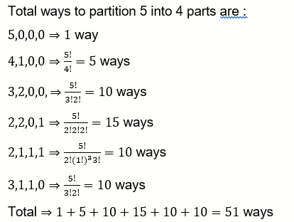 If n is the number of ways five different employees can sit into four indistinguishable offices where any office may have any number of persons including zero, then n is equal to: