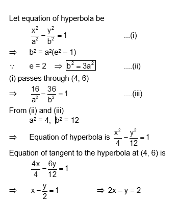 If the eccentricity of the standard hyperbola passing through the point (4, 6) is 2, then the equation of the tangent to the hyperbola at (4, 6) is: