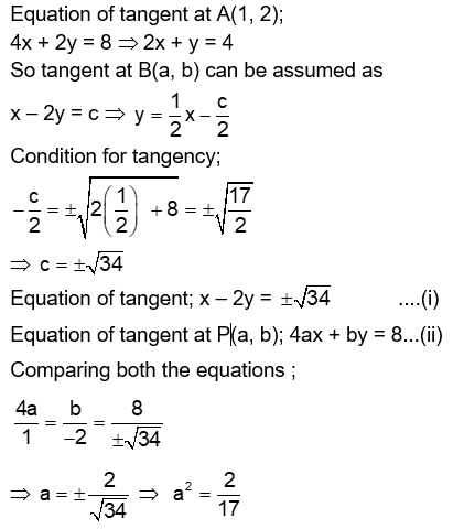 If the tangents on the ellipse $4 x^2+y^2=8$ at the points $(1,2)$ and $(\mathrm{a}, \mathrm{b})$ are perpendicular to each other, then a2 is equal to