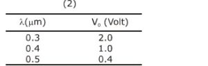 In a historical experiment to determine Planck's constant, a metal surface was irradiated with light of different wavelengths. The emitted photoelectron energies were measured by applying a stopping potential $\left(\mathrm{V}_0\right)$ are given below : Given that $\mathrm{c}=3 \times 10^8 \mathrm{~ms}^{-1}$ and $\mathrm{e}=1.6 \times 10^{-19} \mathrm{C}$, Planck's constant (in units of J s ) found from such an experiment is