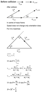 In a scattering experiment, a particle of mass 2 m collides with another particle of mass m , which is initially at rest. Assuming the collision to be perfectly elastic, the maximum angular deviation $\theta$ of the heavier particle, as shown in the figure, in radians is: