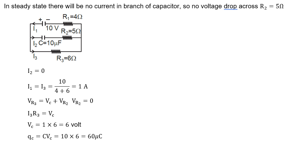 In an electrical circuit drawn below the amount of charge stored in the capacitor is $\mu \mathrm{C}$.