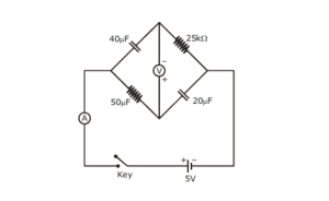 The current in the ammeter becomes zero after a long time