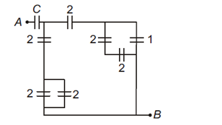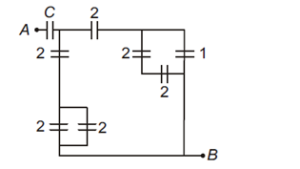 In the circuit shown, find $C$ if the effective capacitance of the whole circuit is to be $0.5 \mu F$. All values in the circuit are in $\mu \mathrm{F}$.