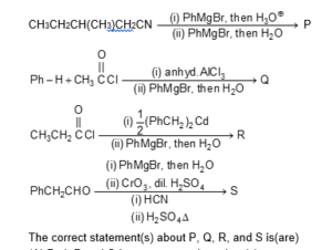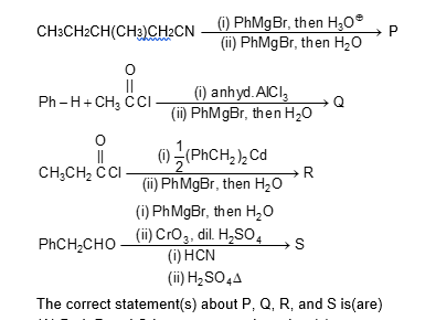 In the following reactions, $\mathrm{P}, \mathrm{Q}, \mathrm{R}$, and S are the major products.