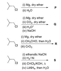 In the following reactions, P, Q, R, and S are the major products.