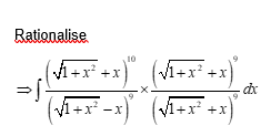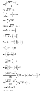 If $\int \frac{\left(\sqrt{1+x^2}+x\right)^{10}}{\left(\sqrt{1+x^2}-x\right)^9} \mathrm{~d} x=\frac{1}{\mathrm{~m}}\left(\left(\sqrt{1+x^2}+x\right)^0\left(\pi \sqrt{1+x^2}-x\right)\right)+\mathrm{C}$ where C is the constant of integration and $m, n \in \mathbf{N}$, then $m+n$ is equal to $\_\_\_\_$ .