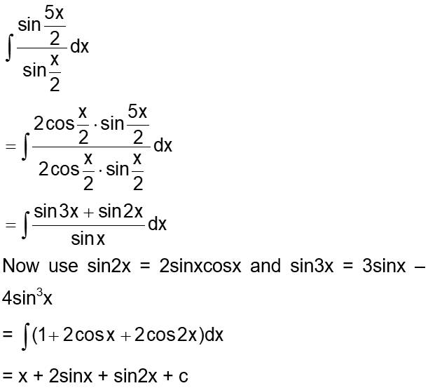 $\int \frac{\sin \frac{5 x}{2}}{\sin \frac{x}{2}} d x$ is equal to: (where c is a constant of integration)