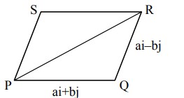 $ \begin{aligned} & \overrightarrow{\mathrm{u}}=((\mathrm{i}+\mathrm{j}) \cdot P Q) P Q \\ & \overrightarrow{\mathrm{u}}=\mid(\mathrm{i}+\mathrm{j}) \cdot P Q \\ & |\overrightarrow{\mathrm{u}}|=\left|(\mathrm{i}+\mathrm{j}) \cdot \frac{(\mathrm{ai}+\mathrm{bj})}{\sqrt{\mathrm{a}^2+\mathrm{b}^2}}\right|=\frac{\mathrm{a}+\mathrm{b}}{\mathrm{a}^2+\mathrm{b}^2} \\ & \overrightarrow{\mathrm{v}}=(\mathrm{i}+\mathrm{j}) \cdot P S \\ & |\overrightarrow{\mathrm{v}}|=\left|\frac{(\mathrm{i}+\mathrm{j}) \cdot(\mathrm{ai}-\mathrm{bj})}{\sqrt{\mathrm{a}^2+\mathrm{b}^2}}\right|=\frac{\mathrm{a}-\mathrm{b}}{\sqrt{\mathrm{a}^2+\mathrm{b}^2}} \\ & |\overrightarrow{\mathrm{u}}|=|\overrightarrow{\mathrm{v}}|=|\overrightarrow{\mathrm{w}}| \\ & \frac{|(\mathrm{a}+\mathrm{b})|+|(\mathrm{a}-\mathrm{b})|}{\sqrt{\mathrm{a}^2+\mathrm{b}^2}}=\sqrt{2} \end{aligned} $