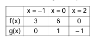 Let $f, g:[-1,2] \rightarrow R$ be continuous function which are twice differentiable on the interval $(-1,2)$. Let the values of $f$ and $g$ at the points $-1,0$ and 2 be as given in the following table :