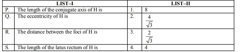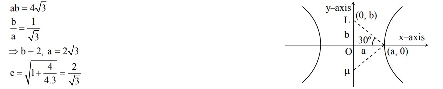 Let H : $\frac{x^2}{a^2}-\frac{y^2}{b^2}=1$, where $a>b>0$, be a hyperbola in the xy-plane whose conjugate axis LM subtends an angle of $60^{\circ}$ at one of its vertices $N$. Let the area of the triangle $L M N$ be $4 \sqrt{3}$.
