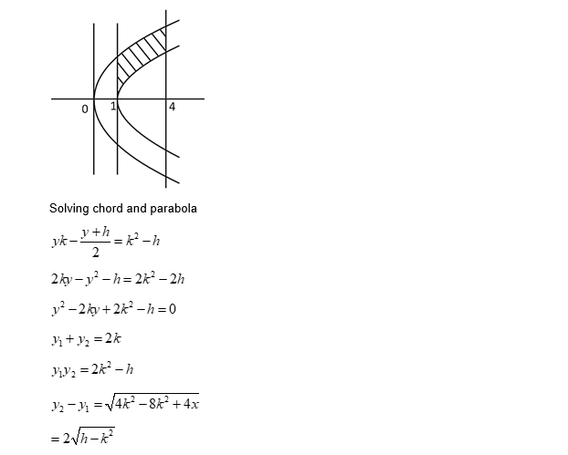 Let $S$ denote the locus of the mid-points of those chords of the parabola $y^2=x$, such that the area of the region enclosed between the parabola and the chord is $\frac{4}{3}$. Let $\mathcal{R}$ denote the region lying in the first quadrant, enclosed by the parabola $y^2=x$, the curve $S$, and the lines $x=1$ and $x=4$.