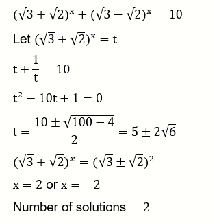 Let S={x∈R:(√3+√2 )^x+(√3-√2 )^x=10}. Then the number of elements in S is :