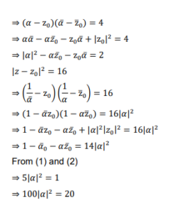 Let the complex numbers $\alpha$ and $\frac{1}{\bar{\alpha}}$ lie on the circles $\left|z-z_0\right|^2=4$ and $\left|z-z_0\right|^2=16$ respectively, where $\mathrm{z}_0=1+\mathrm{i}$. Then, the value of $100|\alpha|^2$ is