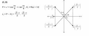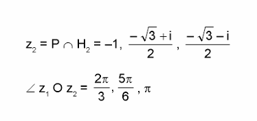 Let $w=\frac{\sqrt{3}+i}{2}$ and $P=\left\{w^n: n=1,2,3, \ldots.\right\}$. Further $H_1=\left\{z \in C: \operatorname{Re} z>\frac{1}{2}\right\}$ and $H_2=\left\{z \in C: \operatorname{Re} z<-\frac{1}{2}\right\}$, where C is the set of all complex numbers. If $\mathrm{z}_1 \in \mathrm{P} \cap \mathrm{H}_1, \mathrm{z}_2 \in \mathrm{P} \cap \mathrm{H}_2$ and O represents the origin, then $\angle \mathrm{z}_1 O \mathrm{z}_2=$