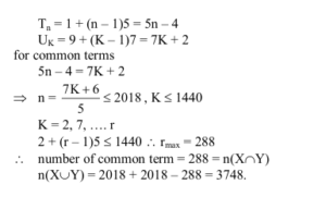 Let X be the set consisting of the first 2018 terms of the arithmetic progression $1,6,11, \ldots$., and Y be the set consisting of the first 2018 terms of arithmetic progression 9, 16, 23, $\ldots .$. . Then, the number of elements in the set $\mathrm{X} \cup \mathrm{Y}$ is $\_\_\_\_$ .