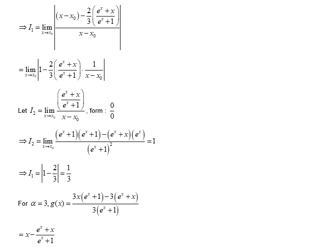 For $\alpha=3, \lim _{x \rightarrow x_0}\left|\frac{g(x)+e^{x_0}}{x-x_0}\right|=\frac{2}{3}$