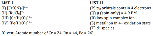I → Q, T; II → S, T; III → P, T; IV → Q, R